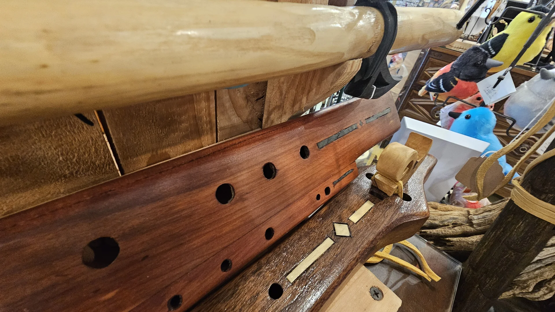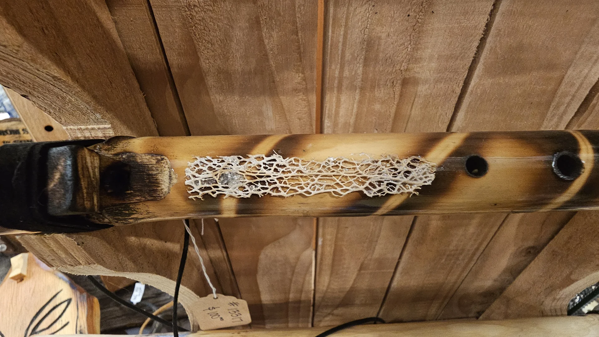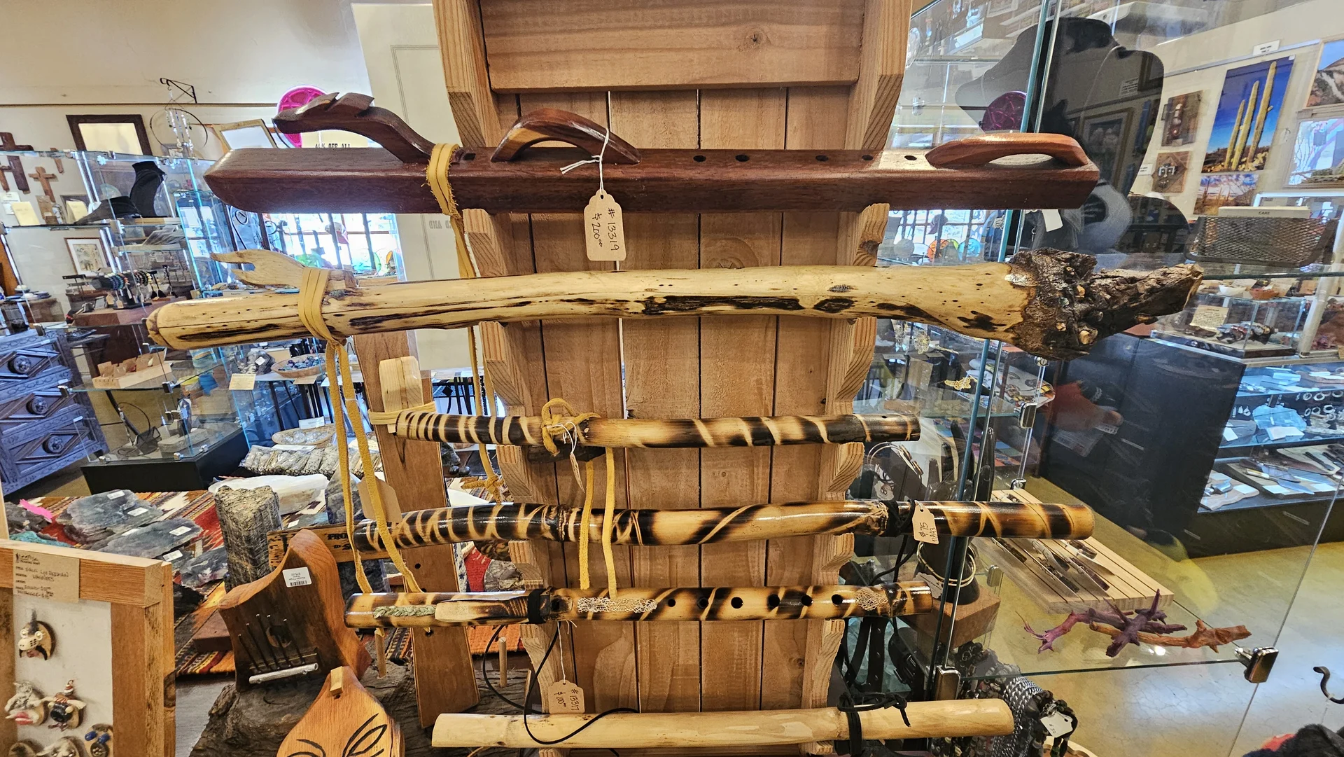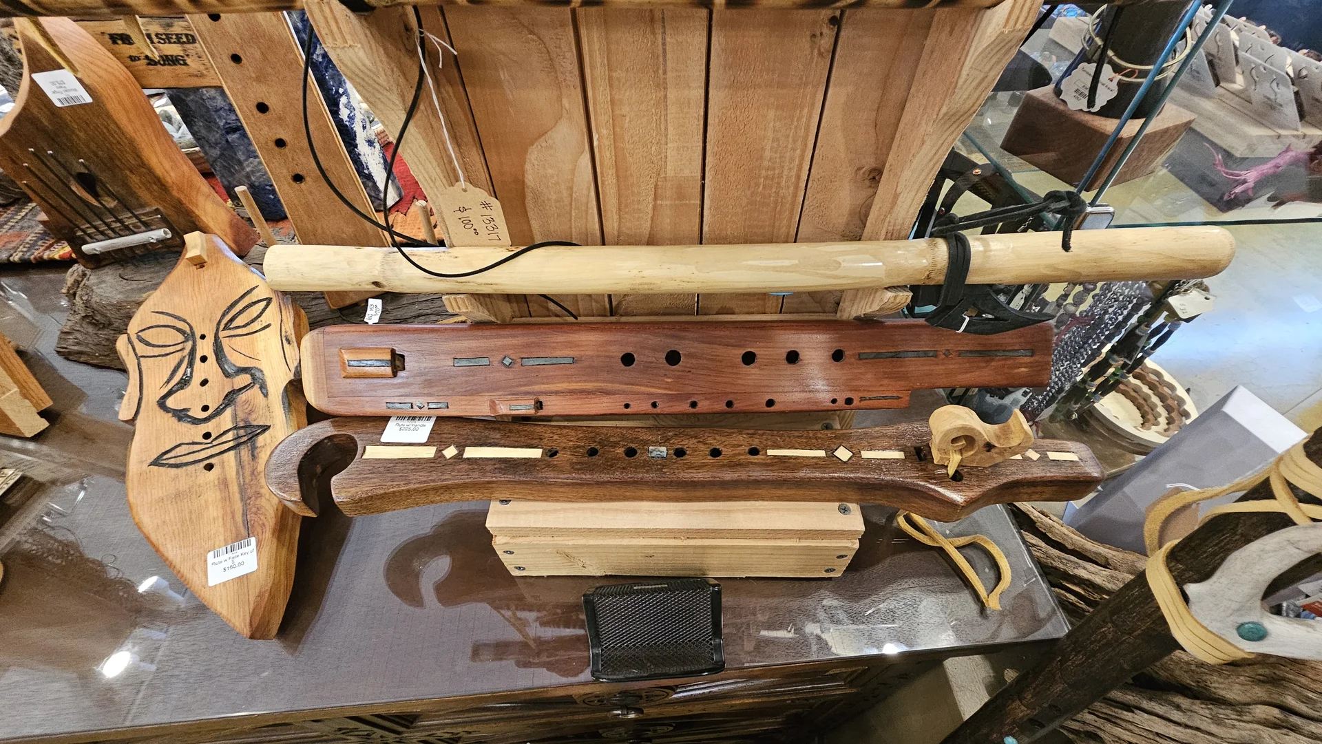 In addition to his craftsmanship, Zach is an accomplished musician with two released CDs. His first album, Southern Migration, draws inspiration from the annual sandhill crane migration near Patagonia, capturing the majesty and grace of these birds through a 53-minute journey of eclectic acoustic songs, primarily featuring his native flute work. His second album, Repurposed, showcases the distinctive sounds of his handcrafted instruments. Both albums are available at Creative Spirit Artists Gallery in Patagonia, where his instruments are also sold.