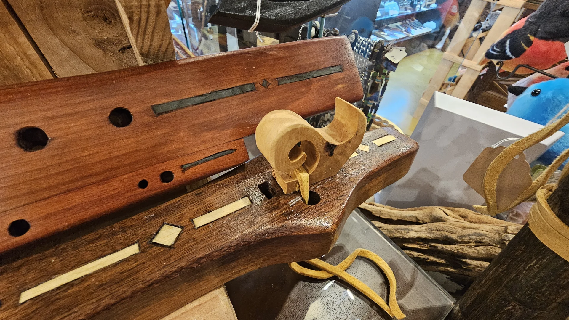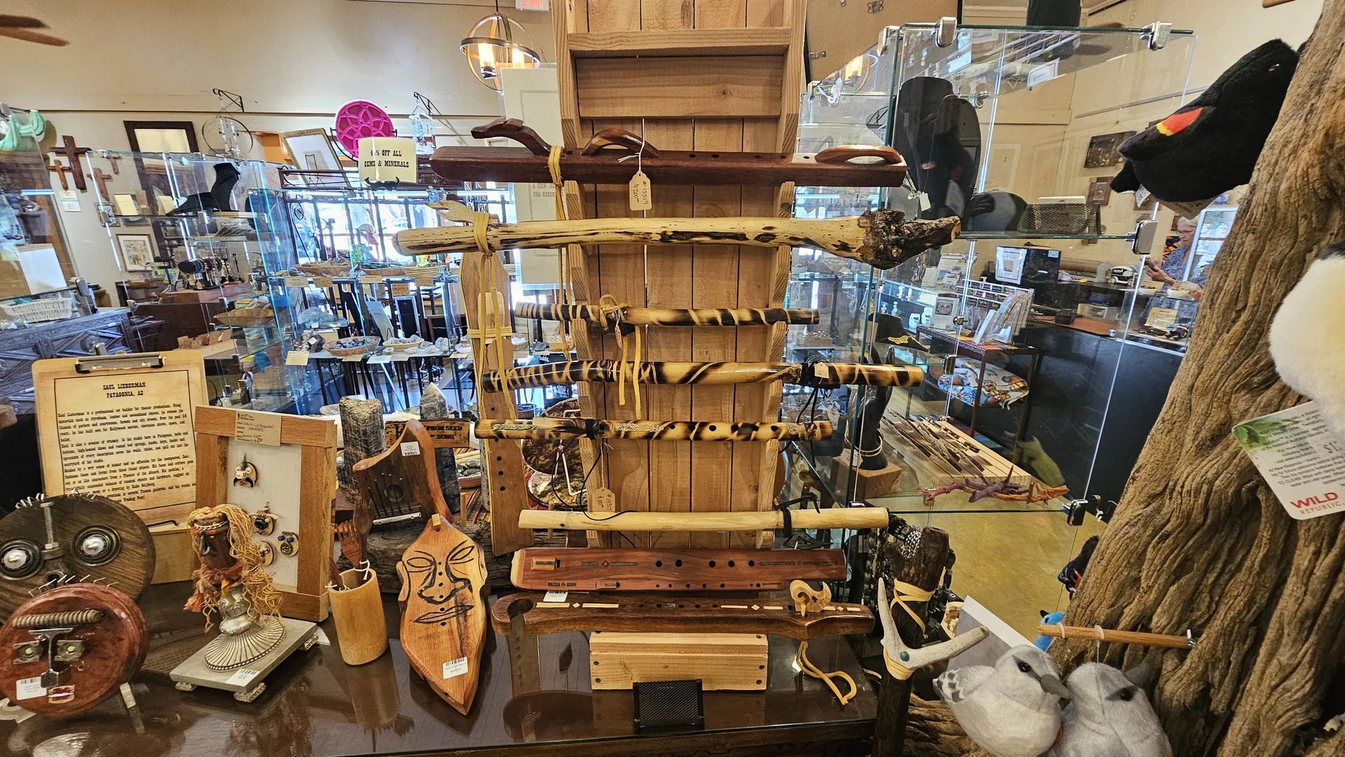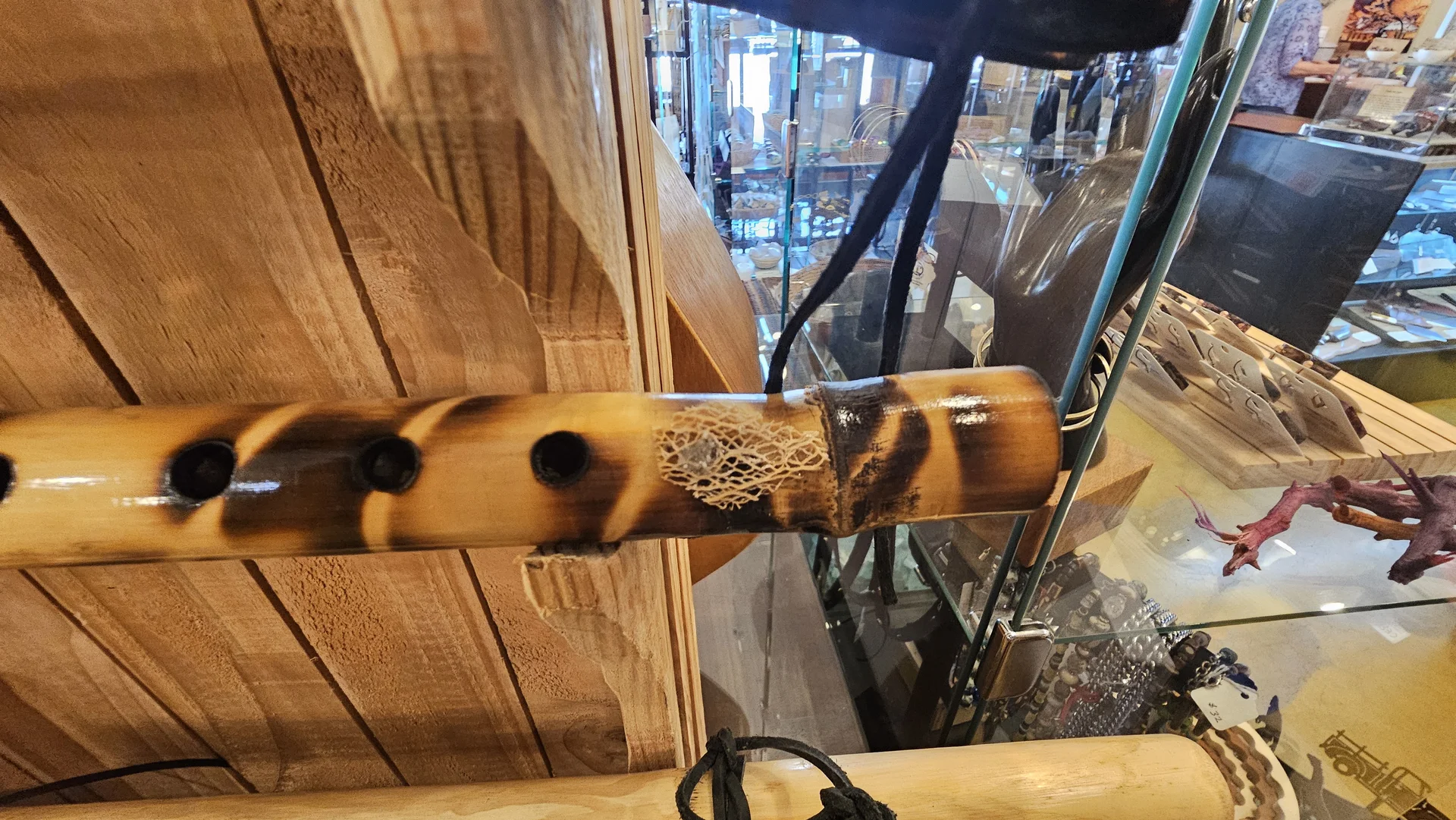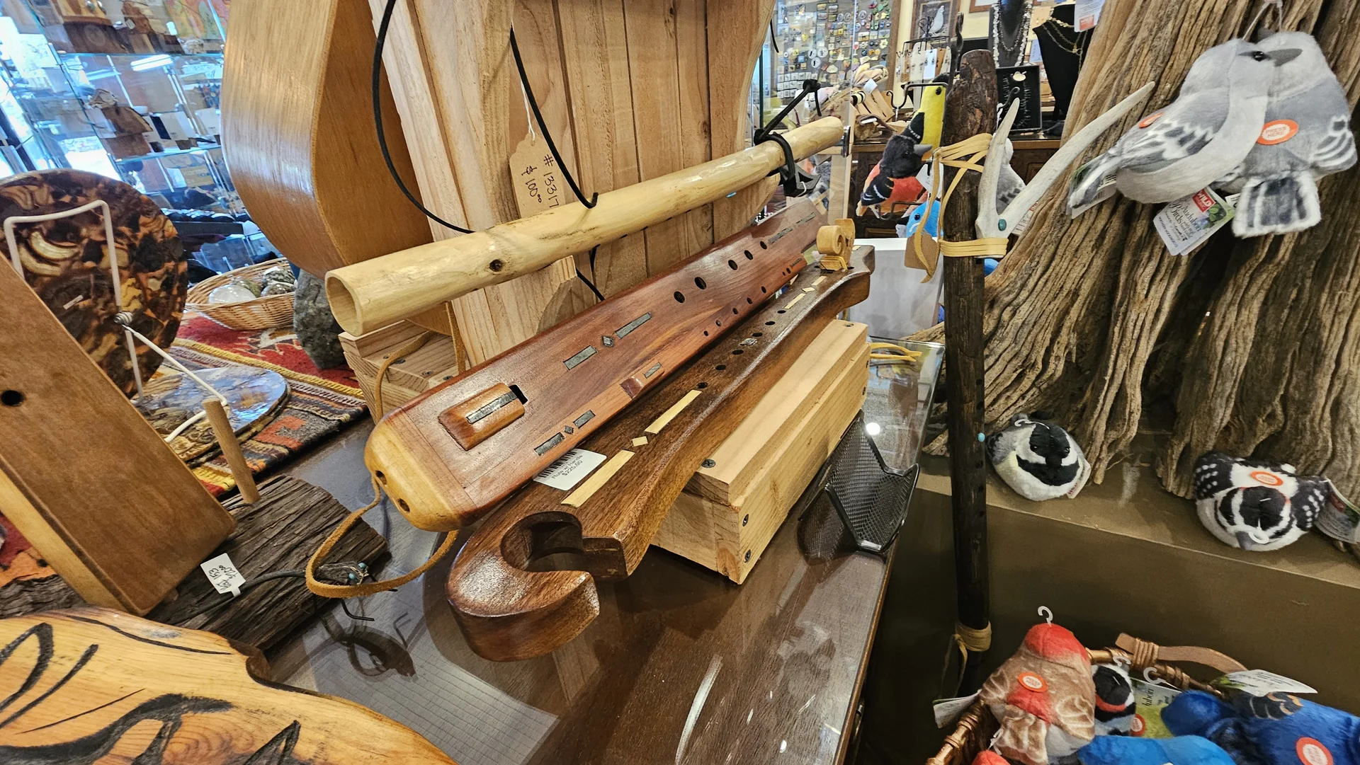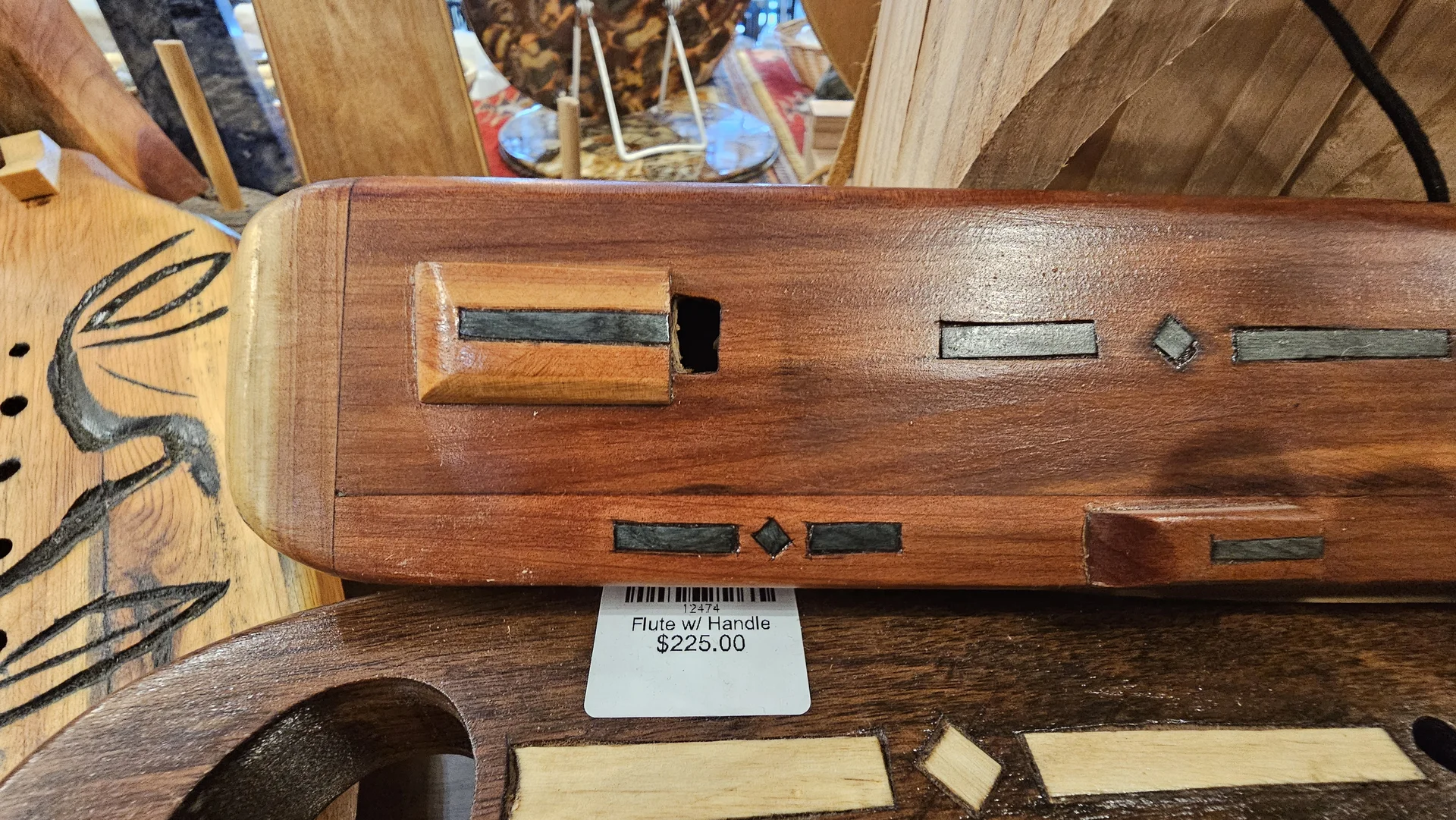 In addition to his craftsmanship, Zach is an accomplished musician with two released CDs. His first album, Southern Migration, draws inspiration from the annual sandhill crane migration near Patagonia, capturing the majesty and grace of these birds through a 53-minute journey of eclectic acoustic songs, primarily featuring his native flute work. His second album, Repurposed, showcases the distinctive sounds of his handcrafted instruments. Both albums are available at Creative Spirit Artists Gallery in Patagonia, where his instruments are also sold.